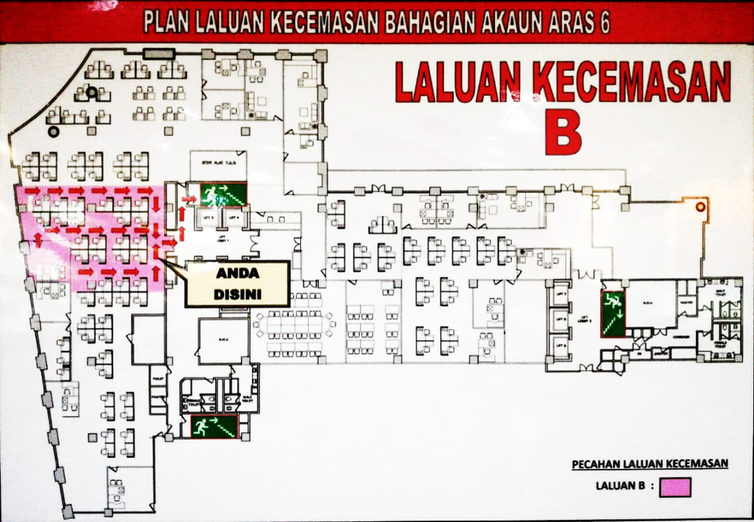 Pelan Lantai & Laluan Kecemasan Bahagian Akaun
