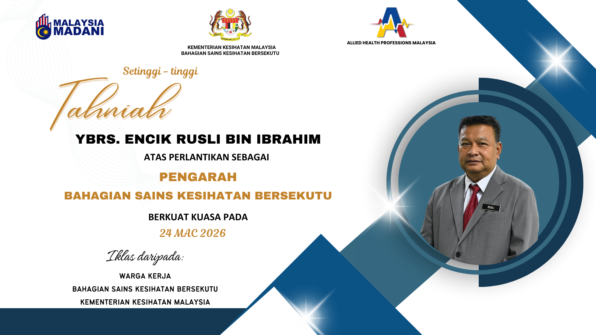 Sukacita dimaklumkan bahawa Bahagian Sains Kesihatan Bersekutu (BSKB), Kementerian Kesihatan Malaysia (KKM) sedang mengadakan sesi konsultasi secara atas talian berkaitan cadangan Garis Panduan Kemudahan dan Perkhidmatan Jagaan Kesihatan Bersekutu Swasta Standalone bagi mendapatkan pemahaman keseluruhan terhadap garis panduan ini dan mendapatkan maklum balas penambahbaikan daripada pihak yang terlibat dalam pelaksanaan garis panduan.