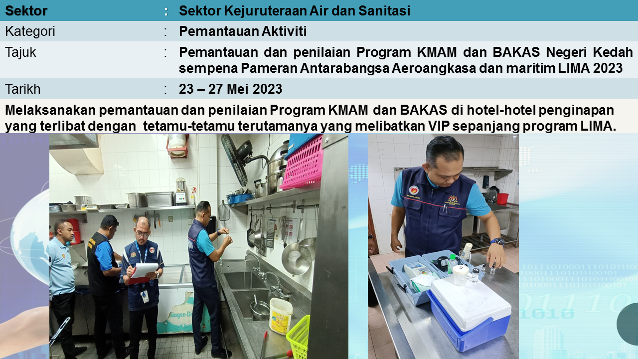 - Menentukan semua bekalan air awam selamat.