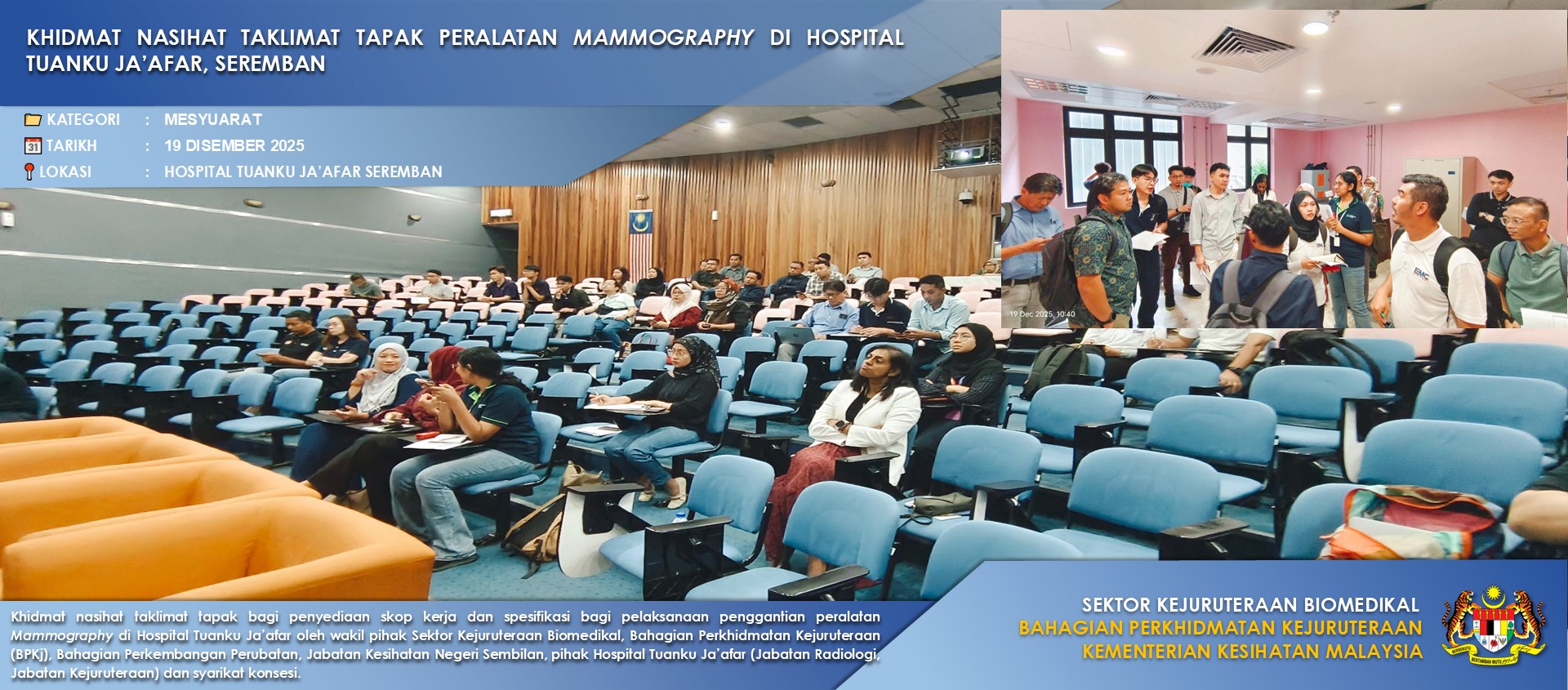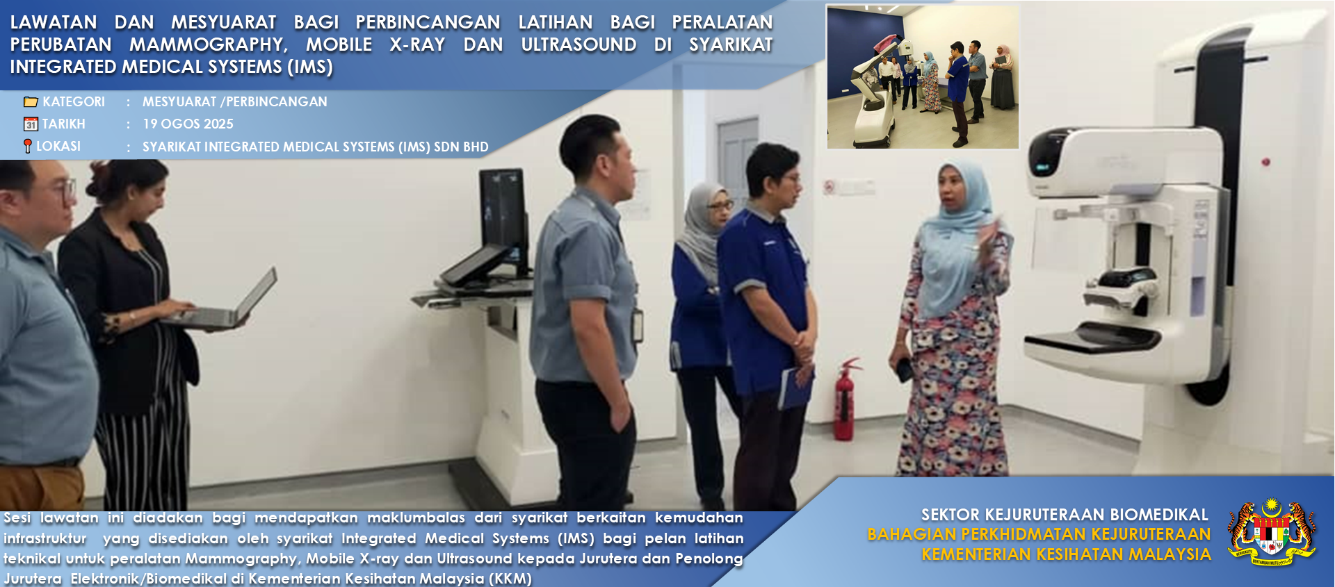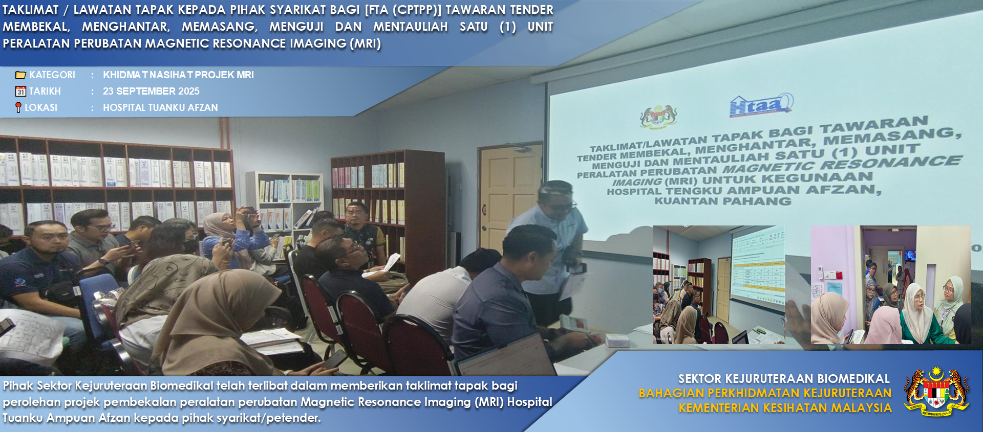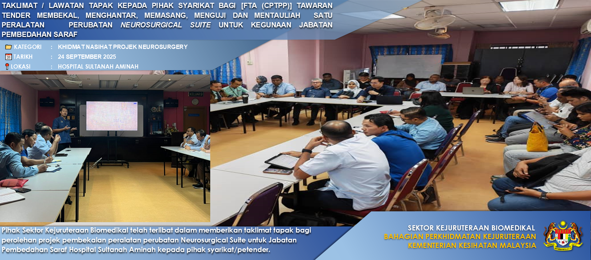 Sektor Kejuruteraan Biomedikal (SKB) melaksanakan program berkaitan projek pembekalan peranti perubatan, memberi khidmat nasihat teknikal, menyediakan platform latihan bagi peningkatan kompentensi jurutera biomedikal di Kementerian Kesihatan Malaysia (KKM) selaras Akta Peranti Perubatan 2012 .