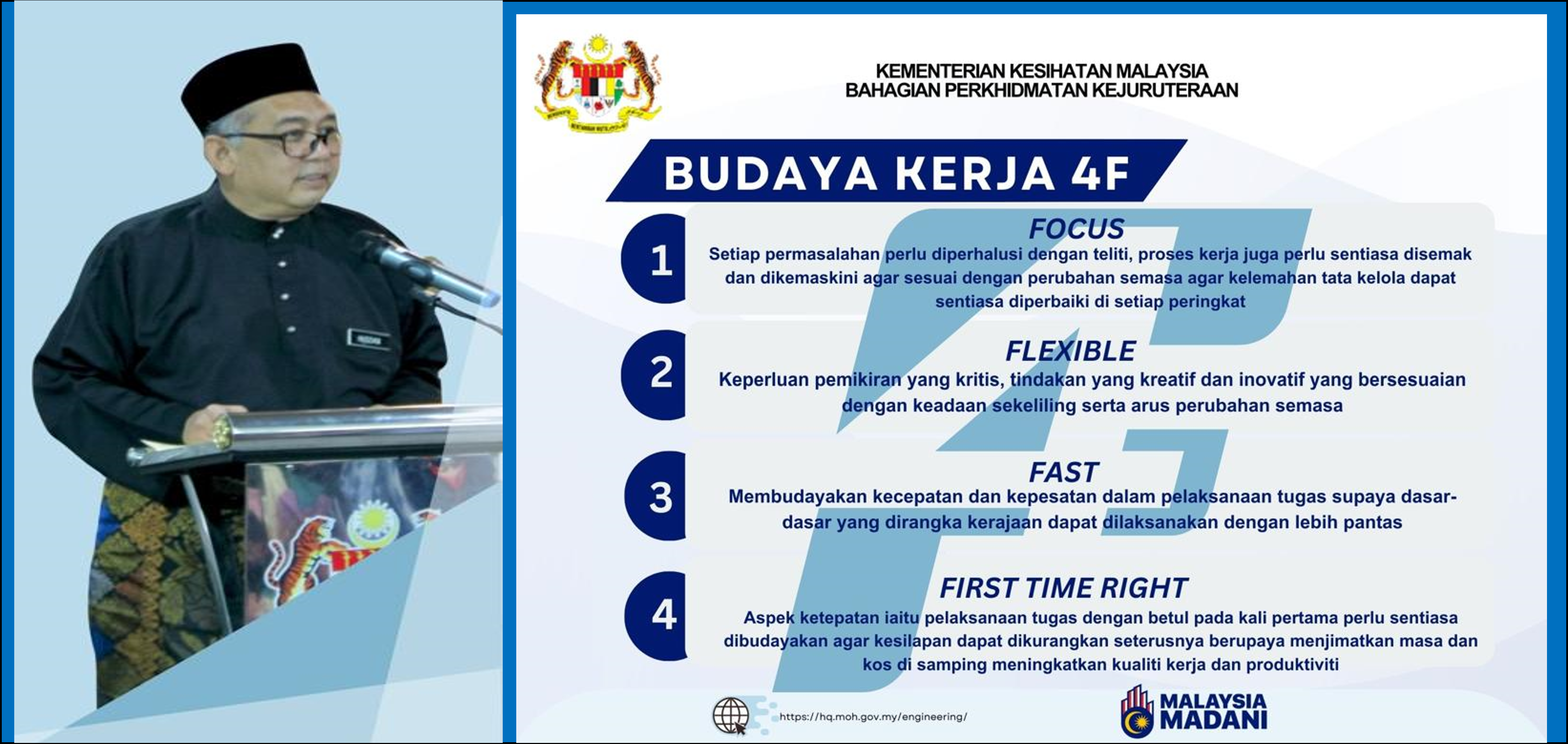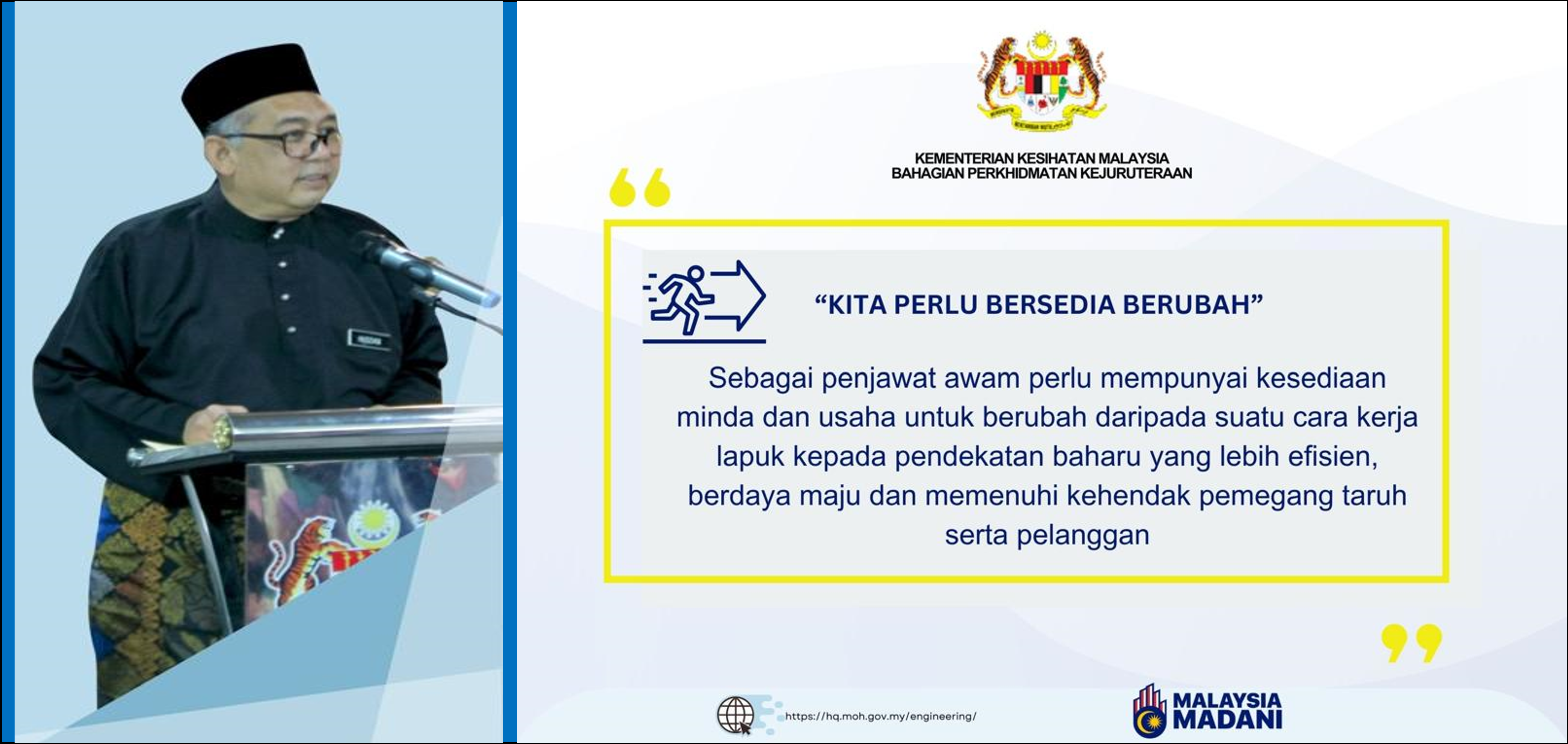 "Saya amat mengharapkan sokongan yang padu daripada semua kakitangan di setiap peringkat bermula dari pucuk pimpinan atasan BPKj sehingga kepada kakitangan profesional dan sokongan dalam menterjemahkan setiap arahan dan insiatif yang saya telah rangkakan selama ini."