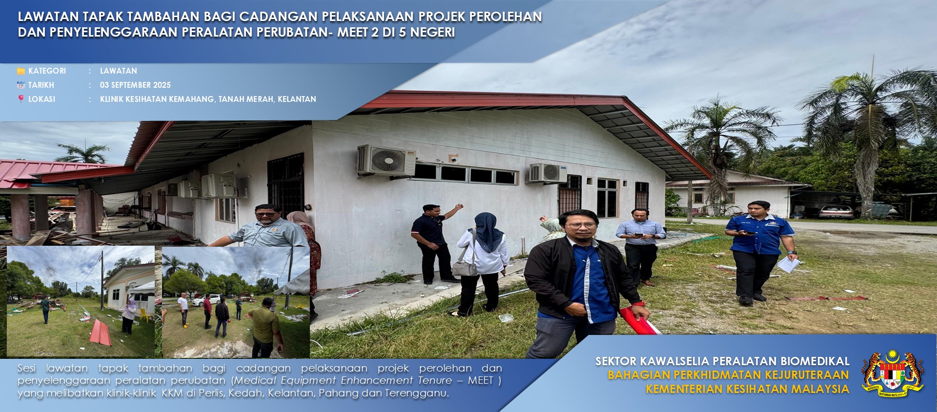 Sektor Kawalselia Peralatan Biomedikal (KSB) berfungsi untuk mengawalselia dan memantau pekhidmatan kejuruteraan peralatan biomedikal di semua Hospital, Klinik dan Institusi Kementerian Kesihatan Malaysia.