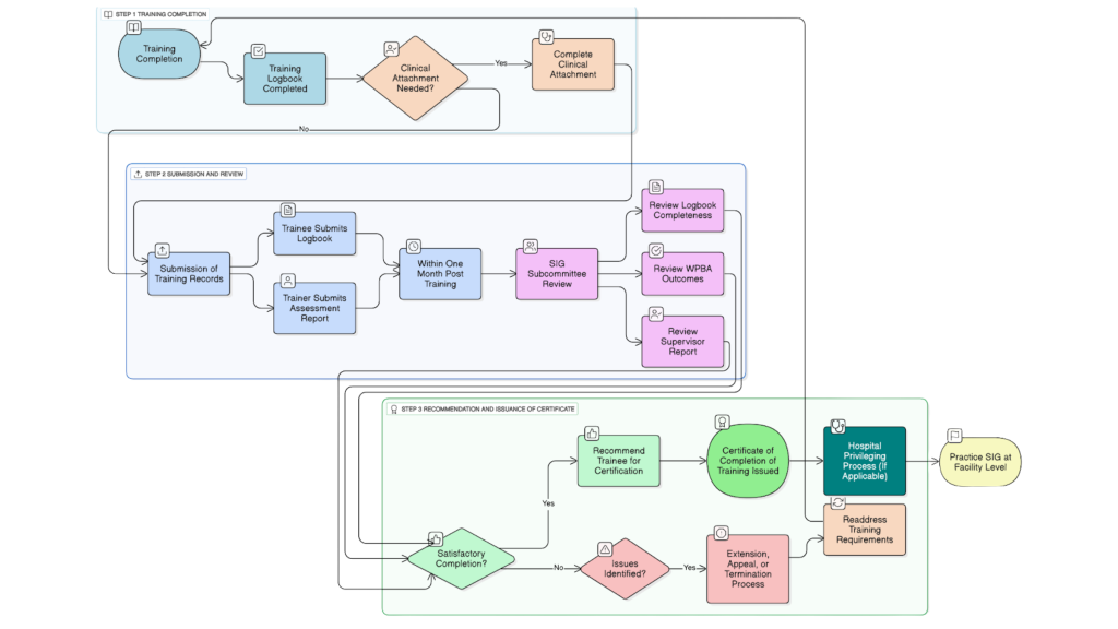 An assessment report is a formal evaluation prepared by the supervisor to assess a trainee’s performance, skills, and development during training. The completed report or its acknowledgement must be submitted to the relevant SIG subcommittee within 1 (one) month after training ends for certificate processing and further action.
