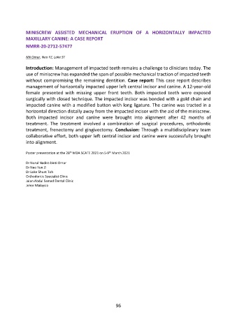 horizontal direction distally away from the impacted incisor with the aid of the miniscrew.