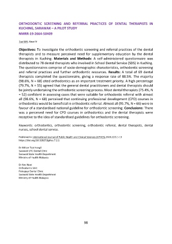 Keywords: orthodontics, orthodontic screening, orthodontic referral, dental therapists, dental