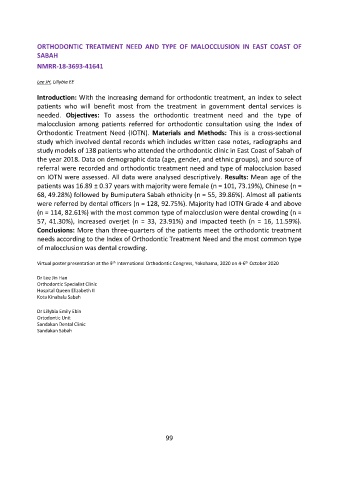 ORTHODONTIC TREATMENT NEED AND TYPE OF MALOCCLUSION IN EAST COAST OF