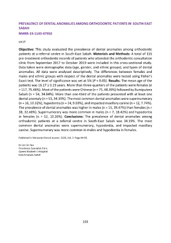 dental anomaly (n = 53, 34.19%). The most common dental anomalies were supernumerary