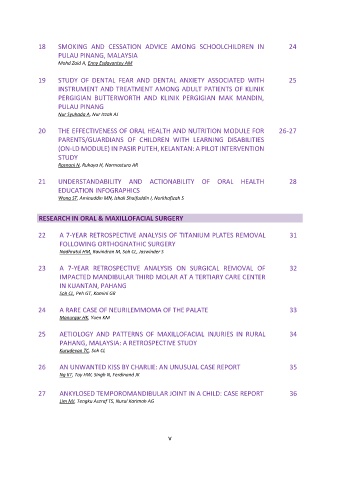 22 A 7-YEAR RETROSPECTIVE ANALYSIS OF TITANIUM PLATES REMOVAL 31