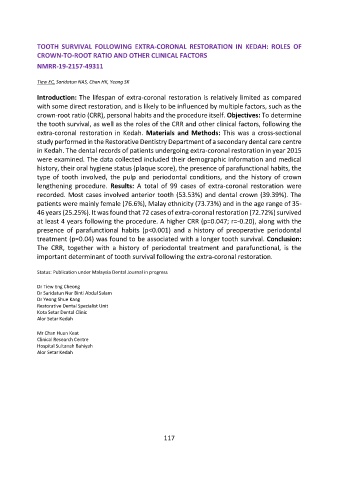 Status: Publication under Malaysia Dental Journal in progress