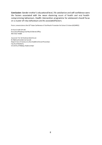 Poster presentation at the 10 Asian Conference of Oral Health Promotion for School Children (ACOHPSC)