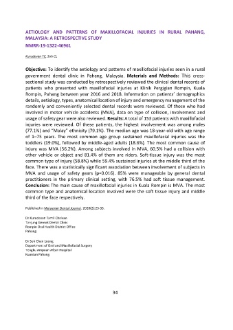 AETIOLOGY AND PATTERNS OF MAXILLOFACIAL INJURIES IN RURAL PAHANG,