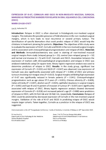 margins. Validation of the role of Ki-67 and ISG15 in predicting relapse of OSCC would