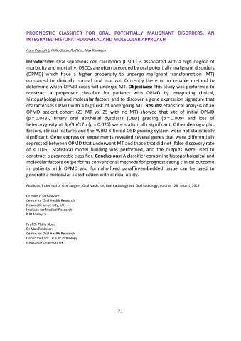 PROGNOSTIC CLASSIFIER FOR ORAL POTENTIALLY MALIGNANT DISORDERS: AN