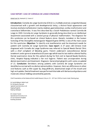 diagnosed with Cornelia de Lange Syndrome was referred to Special Needs Dental Clinic