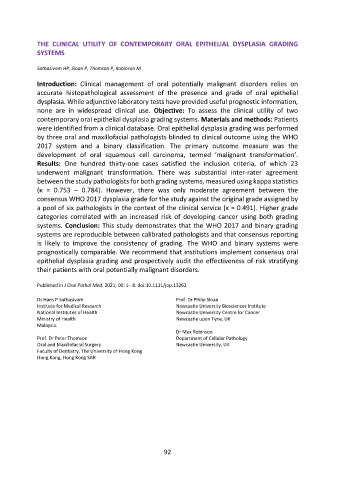 THE CLINICAL UTILITY OF CONTEMPORARY ORAL EPITHELIAL DYSPLASIA GRADING