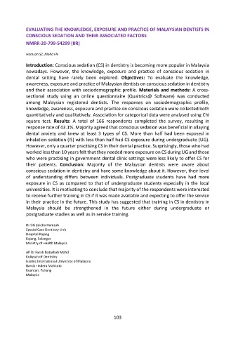 nowadays. However, the knowledge, exposure and practice of conscious sedation in