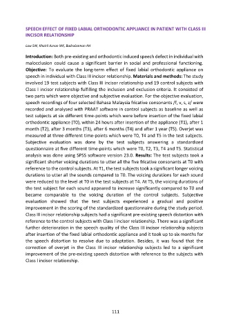 SPEECH EFFECT OF FIXED LABIAL ORTHODONTIC APPLIANCE IN PATIENT WITH CLASS III