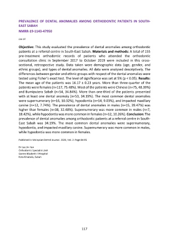 Published in Malaysian Dental Journal. 2020, Vol. 2: Page 84-95
