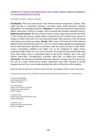 LONGEVITY OF DENTAL RESTORATIONS BY THE SCHOOL DENTAL SERVICE IN DUNGUN: