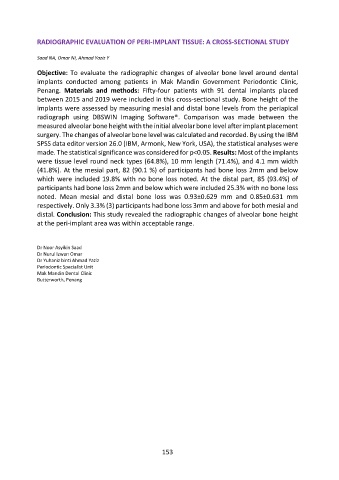Penang. Materials and methods: Fifty-four patients with 91 dental implants placed