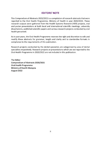 reported to the Oral Health Programme, Ministry of Health in year 2020/2021. These