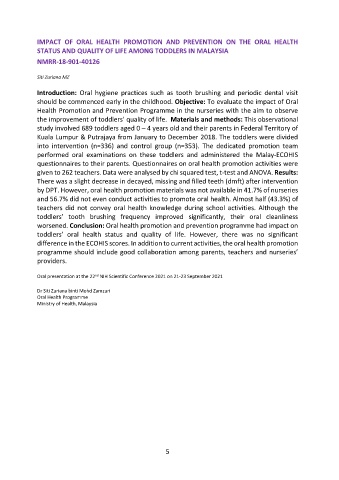 performed oral examinations on these toddlers and administered the Malay-ECOHIS