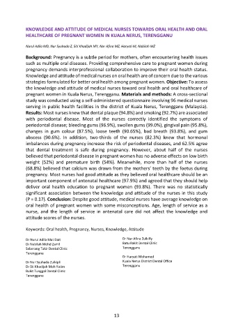 Keywords: Oral health, Pregnancy, Nurses, Knowledge, Attitude