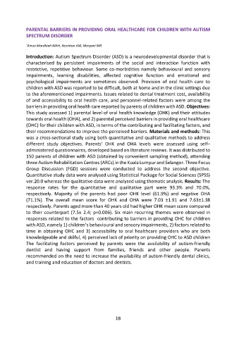 PARENTAL BARRIERS IN PROVIDING ORAL HEALTHCARE FOR CHILDREN WITH AUTISM