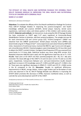 THE EFFICACY OF ORAL HEALTH AND NUTRITION PACKAGE FOR CEREBRAL PALSY