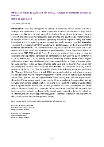 IMPACT OF COVID-19 PANDEMIC ON DENTAL SERVICES IN KUANTAN DISTRICT OF