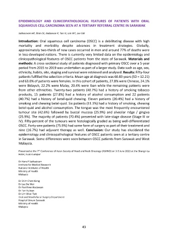 clinicopathological features of OSCC patients from the state of Sarawak. Materials and