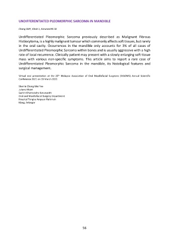 Undifferentiated Pleomorphic Sarcoma in the mandible, its histological features and