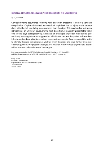 Published in Malaysian Journal of Oral & Maxillofacial Surgery (2021); 19, page 54