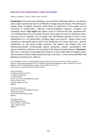 Oral Presentation at the 25 Annual MAOMS Scientific Conference on 19-20 March 2021 (virtual conference)