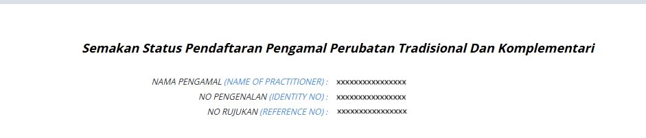 Untuk makluman, status bagi permohonan pendaftaran pengamal dan perakuan pengamalan pengamal berdaftar yang diterima dan diproses sejak 1 Januari 2025 akan dimaklumkan melalui sistem semakan online yang boleh dicapai daripada pautan berikut: